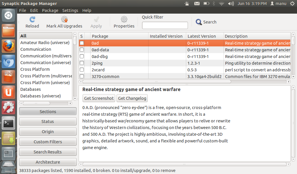 - CLICK HERE to install Synaptic Package Manager from Ubuntu Software Center.