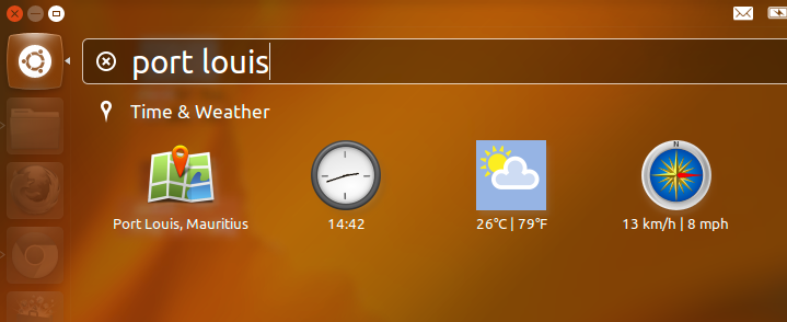 - Unity Cities lens/scope for Ubuntu 12.04 is nifty. You just have to open up Dash and type in the city of your choice. It will show you the map, time, temperature and even the wind-speed right in your Unity Dash.